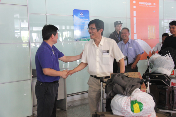 ——公司董事長、總經理王元旦等到機場迎接