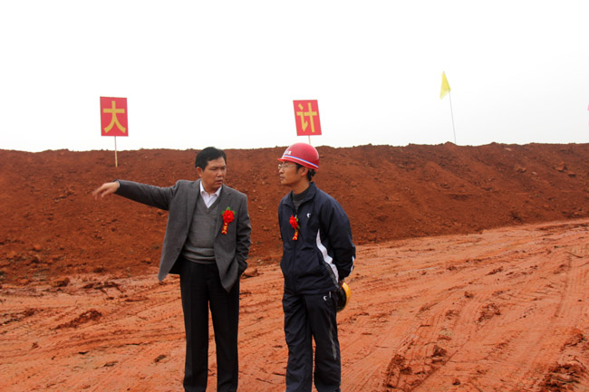 典禮開始前,公司總工程師吳鐵凡(左)在現(xiàn)場(chǎng)部署工作