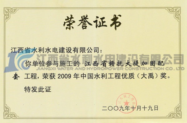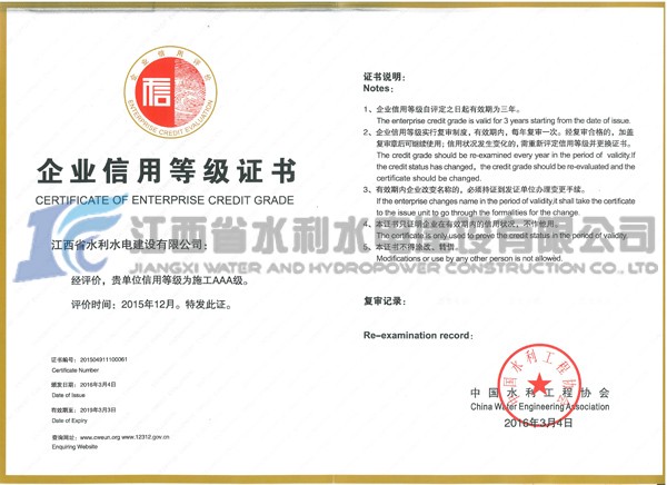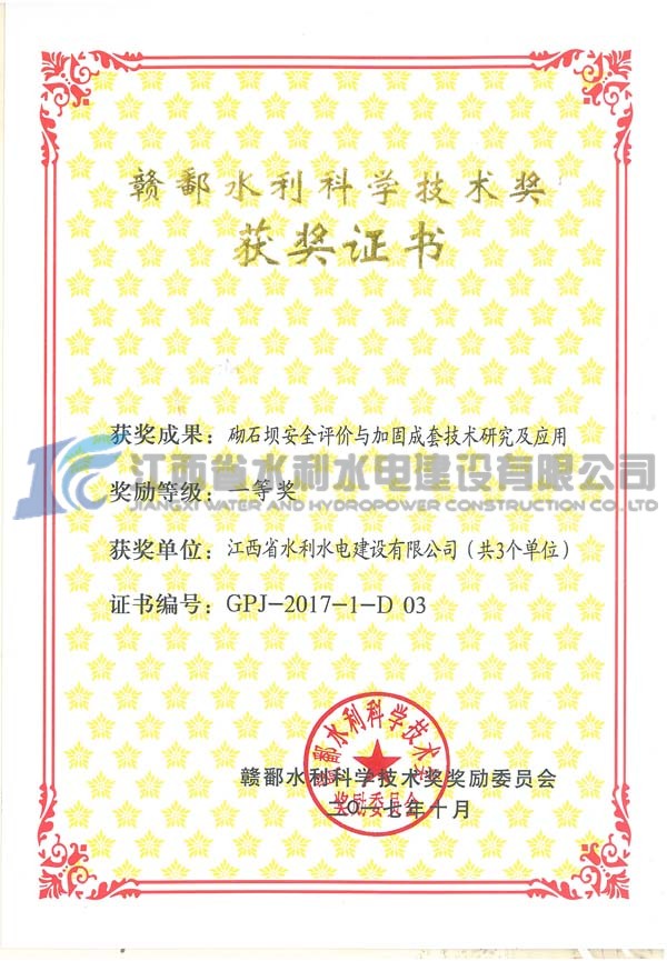 金杯銀杯不如老百姓的口碑。十年來(lái),公司始終以項(xiàng)目管理為核心,以過(guò)程控制為主線,以質(zhì)量安全為重點(diǎn),以品牌形象為抓手,努力鑄造精品工程,滿足社會(huì)需要,實(shí)現(xiàn)社會(huì)價(jià)值。十年來(lái),公司共有 12項(xiàng)QC成果,獲省部級(jí)獎(jiǎng)項(xiàng);有 7項(xiàng)工法獲得省部級(jí)工法,2項(xiàng)科研項(xiàng)目研究獲贛鄱水利科技一等獎(jiǎng);填補(bǔ)了歷史空白,有力的提升了企業(yè)的核心競(jìng)爭(zhēng)力。十年來(lái),公司承建的贛撫大堤加固配套工程和長(zhǎng)江大堤防洪工程榮獲“大禹獎(jiǎng)”,數(shù)十個(gè)項(xiàng)目榮獲全省水利優(yōu)良工程獎(jiǎng),5個(gè)項(xiàng)目被水利部評(píng)為文明工地,榮獲水利部首一批安全生產(chǎn)標(biāo)準(zhǔn)化施工企業(yè)和信用等級(jí)AAA企業(yè)。