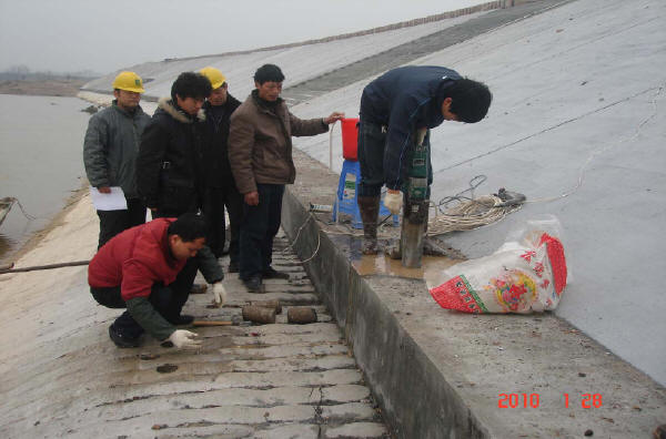※ 重點檢查水庫的險情是否已按設計要求給予消除;工程質量是否按規定檢驗,各項檢測數據是否滿足設計要求或相關標準:土方的壓實度、滲透系數;混凝土(含預制塊)的抗壓強度、抗凍、抗滲、彈性模量;砂漿的抗壓強度;灌漿的壓水試驗結果(透水率Lu):固結灌漿≮5%、帷幕灌漿≮10%。