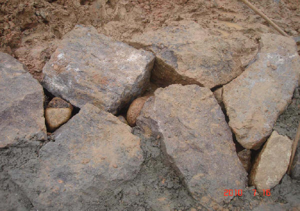 砌石所用石料必須新鮮、堅硬、完整,嚴禁使用風化石、有裂隙石料。對表層風化的石料,無論作腹石、面石,也必須徹底鑿除。